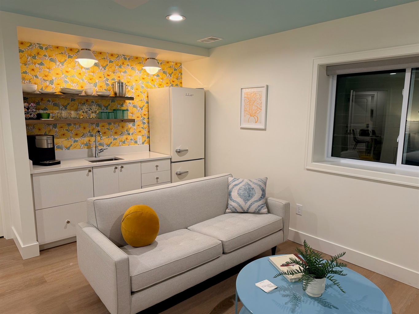 * Inviting living area with a fully equipped kitchenette, dining space, and comfortable seating.